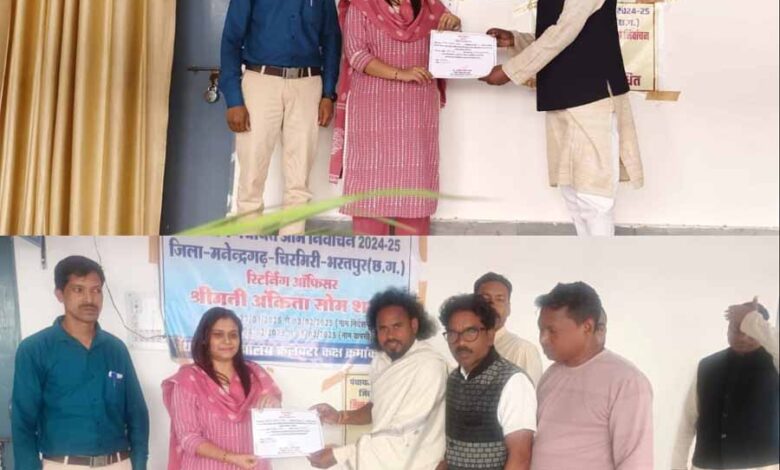 मनेंद्रगढ़ पंचायत निर्वाचन 2025: चार नवनिर्वाचित जिला पंचायत सदस्य को प्रदान किया प्रमाण पत्र