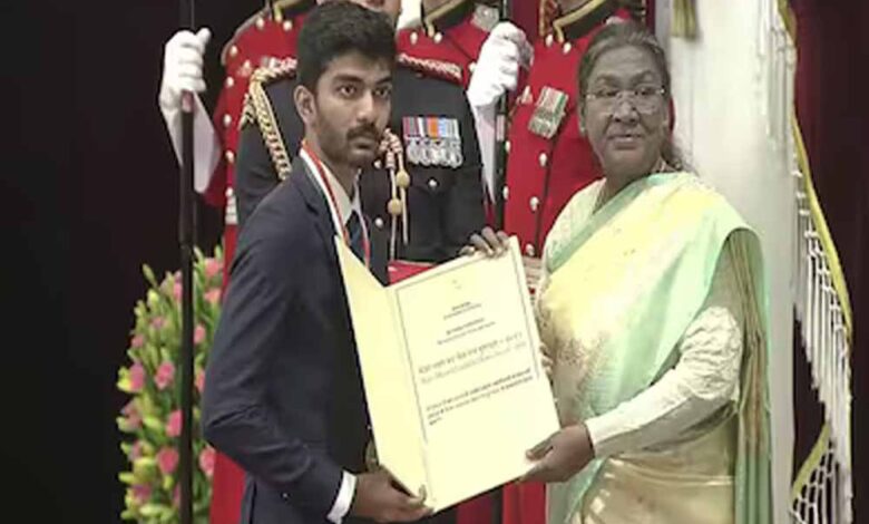 मनु भाकर और डी गुकेश को राष्ट्रपति द्रौपदी मुर्मू ने किया सम्मानित, मिला खेल रत्न, 32 खिलाड़ियों को अर्जुन अवॉर्ड