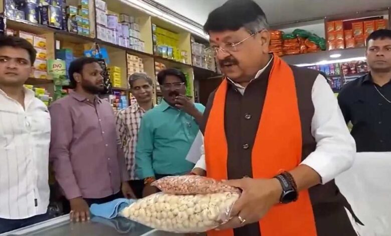 अपनी पुश्तैनी किराने की दुकान पर मंत्री कैलाश विजयवर्गीय ने सामान बेचा