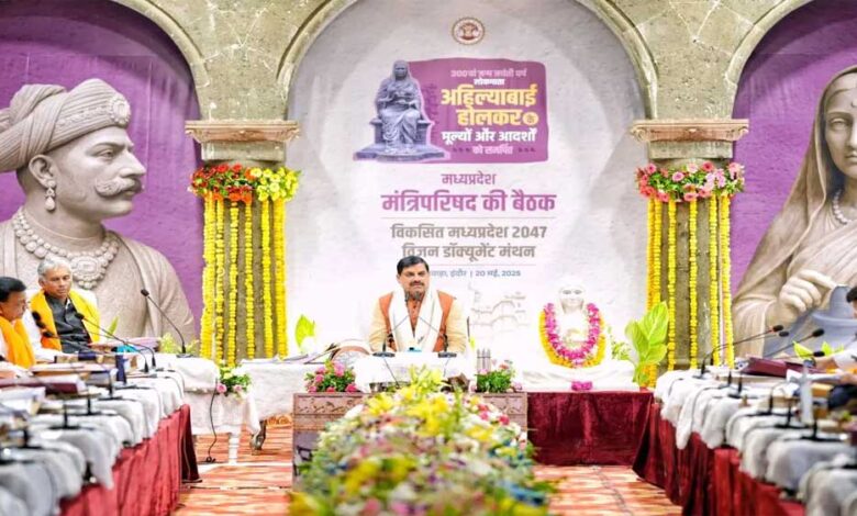 आज इंदौर में मुख्यमंत्री डॉ. मोहन यादव की अध्यक्षता में राज्य कैबिनेट की बैठक राजवाड़ा स्थित गणेश हॉल में आयोजित की गई। इस बैठक की खास बात यह रही कि परंपरा और संस्कृति को केंद्र में रखते हुए देवी अहिल्या बाई होलकर की प्रतिमा को बैठक में प्रमुख स्थान दिया गया। प्रतिमा को मुख्यमंत्री से भी आगे रखा गया, और बैठक की शुरुआत उनसे स्मरण और पुष्पांजलि अर्पित कर की गई। यह दृश्य राज्य की सांस्कृतिक जड़ों से जुड़ाव का प्रतीक था।