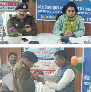 कार्यक्रम के मुख्य अतिथि एसपी यशपाल राजपुत ने संबोधित करते हुए कहा कि किसी भी लोकतांत्रिक देश में सरकार बनाने में मतदाताओं की सबसे बड़ी और अहम भूमिका होती है। अपने इस कर्तव्य को पूरा कर वोटर्स देश के विकास में अपना अमूल्य योगदान दे सकते हैं। इस दौरान कलेक्टर सुश्री ऋजु बाफना ने कहा कि राष्ट्रीय मतदाता दिवस पर हम अपने देश की लोकतांत्रिक परम्पराओं की मर्यादा को बनाए रखने तथा स्वतंत्र निष्पक्ष मतदान में हिस्सा लेते है। इस बार की थीम है ”वोट जैसा कुछ नहीं, वोट जरूर ङालेगे हम”