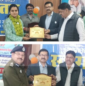 इस अवसर पर उप जिला निर्वाचन अधिकारी व एडीएम सत्येन्द्र प्रसाद सिंह ने बताया कि जिले में नवीन मतदाताओ के नाम जोड़ने का लक्ष्य 11508 मुख्य निर्वाचन पदाधिकारी द्वारा दिया गया था। जिसके सापेक्ष में जिले में 16576 नवीन मतदाताओं के नाम तीनों विधानसभा क्षेत्र में जोड़े गये है। इस अवसर पर कलेक्टर सुश्री ऋजु बाफना व एसपी यशपाल राजपुत को स्मृति चिन्ह व प्रशस्ती पत्र भी दिया गया।