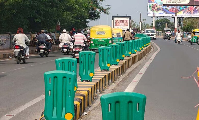इंदौर के शास्त्री ब्रिज पर नया प्रयोग, लोहे के हटाकर अब प्लास्टिक के डिवाइडर लगाए