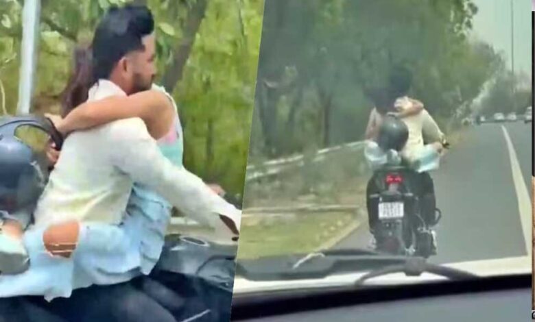 अपोजिट साइड मुंह करके बाइक पर बैठी लड़की इस कपल की करतूत का वीडियो सोशल मीडिया पर चर्चा का विषय बना हुआ है। वीडियो में युवक बिना हेलमेट पहने बाइक चला रहा है। बाइक में युवक के आगे, सामने की तरह से उसकी गर्लफ्रेंड बैठी थी। जो युवक को कसकर गले लगाए हुए है। गर्लफ्रेंड अपने पैर बाइक के पीछे सीट पर रखे हुए है। वह दोनों हाथों से युवक को पकड़कर बैठी है।
