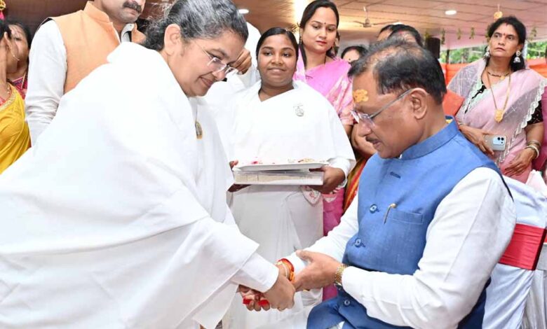 रक्षाबंधन के पावन पर्व पर मुख्यमंत्री श्री विष्णु देव साय को ब्रह्मकुमारी बहनों ने बाँधी राखी