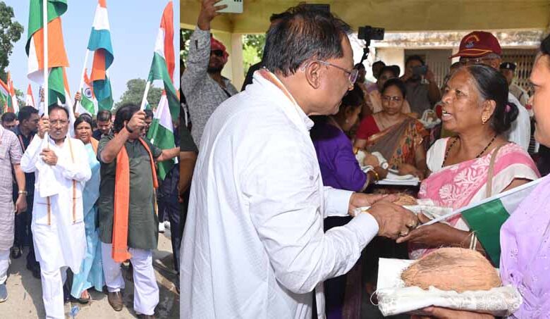 मुख्यमंत्री विष्णु देव साय आज जशपुर जिले के दुलदुला तहसील के चराईडाड़ गांव में तिरंगा यात्रा में शामिल हुए। इस मौके पर उन्होंने गांव के शिव मंदिर के प्रांगण में शहीदों के परिजनों को शाल और श्रीफल भेंटकर सम्मानित किया।