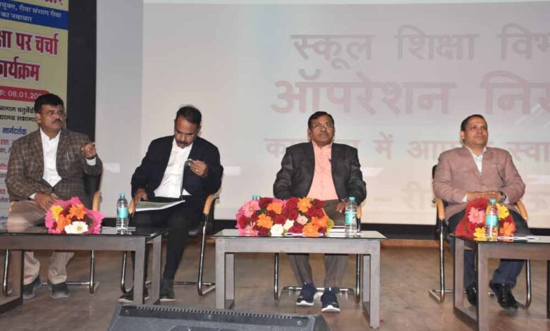 कार्यशाला में संयुक्त संचालक शिक्षा केपी तिवारी ने आपरेशन निखार की जानकारी देते हुए कहा कि शिक्षा की गुणवत्ता में सुधार और बोर्ड परीक्षाओं का परिणाम बेहतर करने के लिए लगातार प्रयास किए जा रहे हैं। स्मार्ट कक्षाओं में गुणी शिक्षकों के लगातार लेक्चर विद्यार्थियों को सुनाए जाते हैं। मॉडल प्रश्नपत्र तथा टिप्स एण्ड ट्रिक्स का भी लगातार अभ्यास कराया जा रहा है। कार्यशाला में माखनलाल चतर्वेदी विश्वविद्यालय के संचालक डॉ संदीप भट्ट ने कॅरियर मार्गदर्शन के संबंध में उपयोगी सुझाव दिए। उन्होंने कहा कि हर विद्यार्थी के कॅरियर की प्लानिंग कक्षा 8वीं के बाद करनी चाहिए। उसी के अनुरूप उसे विषयों का चयन करना चाहिए। कार्यशाला में रीवा और मऊगंज जिले में कक्षा 10वीं और 12वीं में प्रथम तीन स्थान प्राप्त करने वाले स्कूलों के प्राचार्यों को सम्मानित किया गया। कार्यशाला में सीएम राइज पीके स्कूल रीवा के प्राचार्य वरूणेन्द्र सिंह ने बोर्ड परीक्षा परिणामों का विकासखण्डवार विश्लेषण प्रस्तुत किया। कार्यशाला में जिला शिक्षा अधिकारी सुदामालाल गुप्ता तथा तीन सौ प्राचार्य एवं विकासखण्ड शिक्षा अधिकारी शामिल हुए।