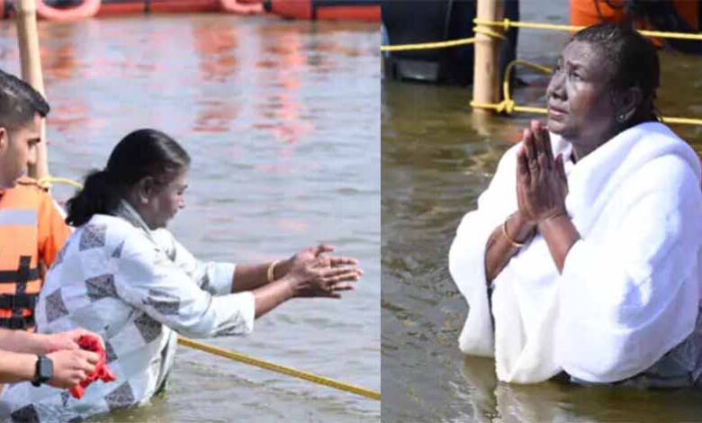 राष्ट्रपति द्रौपदी मुर्मू ने त्रिवेणी संगम में लगाई डुबकी