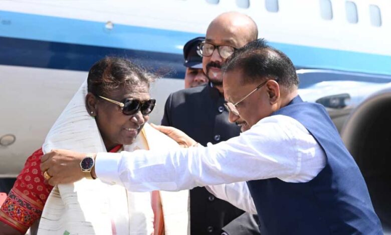 राष्ट्रपति श्रीमती द्रौपदी मुर्मु दो दिवसीय प्रवास पर आज छत्तीसगढ़ की राजधानी रायपुर पहुंची