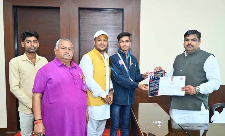शासकीय कचना धुरवा कॉलेज, छुरा जिला – गरियाबंद में बी कॉम तीसरे सेमेस्टर के छात्र श्री ओमप्रकाश सेन, ग्राम दादरगांव पुराना निवासी हैं। कैम्प से लौटने के उपरांत उन्होंने मंत्री श्री यादव से मुलाकात की। मंत्री श्री यादव ने ओमप्रकाश सेन को राष्ट्रीय स्तर पर छत्तीसगढ़ की भागीदारी हेतु हार्दिक शुभकामनाएं देते हुए कहा कि युवा शक्ति ही देश का भविष्य है। प्रदेश के छात्र राष्ट्रीय मंचों पर सहभागिता कर समाज और राज्य का नाम रोशन कर रहे हैं। उन्होंने श्री ओमप्रकाश सेन के उज्ज्वल भविष्य की कामना करते हुए आगे भी इसी तरह सामाजिक व शैक्षणिक गतिविधियों में सक्रिय योगदान देते हुए आगे बढ़ते रहने के लिए प्रेरित और प्रोत्साहित किया।