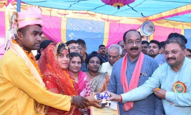 उप मुख्यमंत्री अरुण साव ने सामूहिक विवाह समारोह को संबोधित करते हुए कहा कि मुख्यमंत्री सामूहिक कन्या विवाह योजना के अंतर्गत यहां 20 जोड़ों का विवाह हो रहा है, 40 परिवारों में खुशियां आ रही हैं। आज का दिन ऐतिहासिक है, सामूहिक विवाह के साथ ही एक करोड़ 49 लाख रुपए से अधिक के विकास कार्यों का भूमिपूजन किया गया है। उन्होंने कहा कि मुख्यमंत्री विष्णु देव साय के नेतृत्व में सरकार हर व्यक्ति के विकास के लिए कार्य कर रही है। राज्य और केंद्र सरकार हर परिवार के आवास और इलाज की व्यवस्था के साथ ही सामूहिक विवाह कार्यक्रमों के माध्यम से बेटे-बेटियों के विवाह की चिंता भी दूर कर रही है। छत्तीसगढ़ में विष्णु का सुशासन कल्याणकारी है।