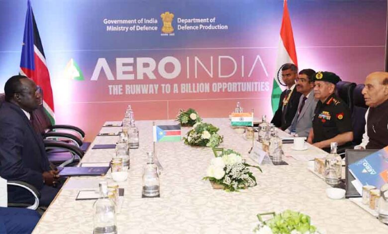 राजनाथ ने एयरो इंडिया से पहले फिजी और दक्षिण सूडानी समकक्षों के साथ द्विपक्षीय बैठकें की