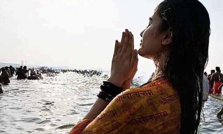 महाकुंभ में आस्था की डुबकी के बाद प्रार्थना करती नजर आईं राशा