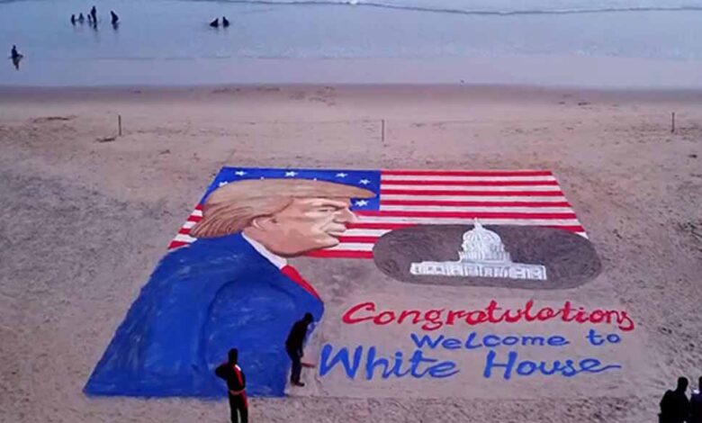 ओडिशा के पुरी बीच पर प्रसिद्ध सैंड आर्टिस्ट सुदर्शन पटनायक ने अमेरिका के नवनिर्वाचित राष्ट्रपति डोनाल्ड ट्रंप के शपथ ग्रहण समारोह से पहले उनकी 47 फीट लंबी सैंड आर्ट बनाई है। इस चित्र पर उन्होंने लिखा "वेलकम टू व्हाइट हाउस"। यह सैंड आर्ट पटनायक ने अपने सैंड आर्ट संस्थान के छात्रों के साथ मिलकर तैयार किया है। ट्रंप सोमवार, 20 जनवरी को अमेरिकी राष्ट्रपति के रूप में शपथ लेंगे। यह चार साल के अंतराल के बाद व्हाइट हाउस में उनकी वापसी होगी। सुदर्शन पटनायक की यह कला अमेरिका के शपथ ग्रहण समारोह से पहले एक महत्वपूर्ण संदेश देती है।