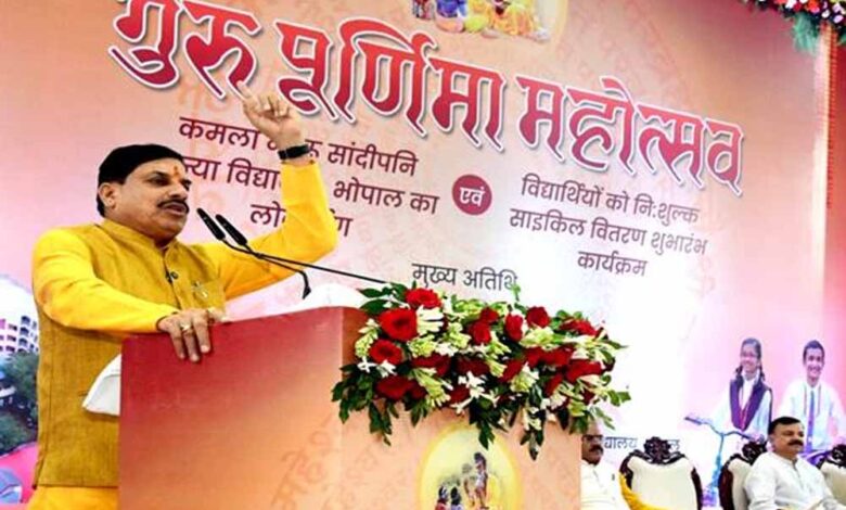मुख्यमंत्री डॉ. यादव ने प्रदेश के सभी शिक्षकों एवं छात्रों को गुरु पूर्णिमा महोत्सव की शुभकामानाएं देते हुए कहा कि प्रदेश में 369 सांदीपनि विद्यालय संचालित हो रहे हैं। जहां शिक्षा केवल किताबों तक सीमित नहीं है, स्कूल विद्यार्थियों के सर्वांगीण विकास के केंद्र बनकर उभरे हैं। मुख्यमंत्री डॉ. यादव ने शत-प्रतिशत परीक्षा परिणाम के लिए महू, देवास, नरसिंहपुर के विद्यालयों को बेहतर शैक्षणिक प्रबंधन विकास के लिए 5-5 लाख रुपए देने की घोषणा की। मुख्यमंत्री डॉ. यादव ने कहा कि विश्वविद्यालयों के कुलपतियों को कुलगुरु की संज्ञा दी गई है, क्योंकि गुरु ही हमें अंधकार से प्रकाश की ओर ले जाते हैं। मुख्यमंत्री डॉ. यादव गुरुवार को शासकीय कमला नेहरू सांदीपनि विद्यालय में आयोजित गुरु पूर्णिमा महोत्सव को संबोधित कर रहे थे।