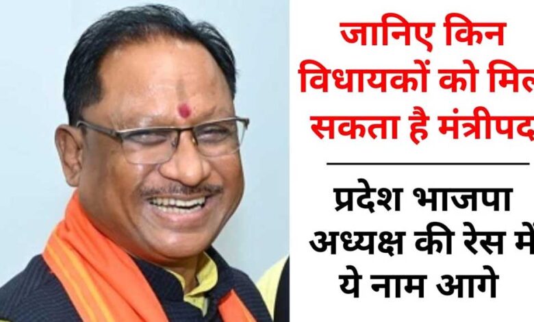 • माना जा रहा है कि भाजपा इस बार अन्य पिछड़ा वर्ग यानी ओबीसी नेता को प्रदेश अध्यक्ष बना सकती है। इसमें विधायक धरमलाल कौशिक, पूर्व नेता प्रतिपक्ष नारायण चंदेल, दुर्ग के पूर्व सांसद विजय बघेल का नाम चर्चा में है।