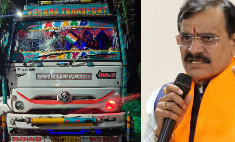 बाल-बाल बचे प्रदेश अध्यक्ष शर्मा काफिले को ट्रक ने मारी टक्कर, 8 पुलिस वाहन क्षतिग्रस्त