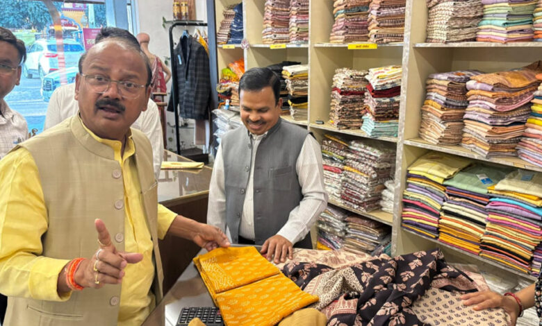 कुटीर एवं ग्रामोद्योग राज्य मंत्री (स्वतंत्र प्रभार) दिलीप जायसवाल ने लोगों से अपील की है कि वे खादी और स्वदेशी उत्पादों को अपनाएं और अपने देश की अर्थव्यवस्था को मजबूत करने में योगदान करें। राज्य मंत्री जायसवाल ने भोपाल स्थित मृगनयनी, कबीरा और विंध्यावैली स्टोर का निरीक्षण कर स्वदेशी उत्पादों की खरीदारी की। इस दौरान उन्होंने जनता से शुद्ध और उत्कृष्ट खादी व स्वदेशी उत्पाद अपनाने का अनुरोध किया।