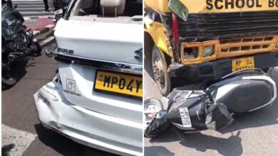 भोपाल के लाल बत्ती चौक पर शादी समारोह से वापस लौट रही बस ने कई वाहनों को टक्कर मारी, एक युवती की मौत हो गई