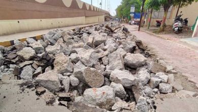 खजराना चौराहे से गणेश मंदिर तक की सर्विस रोड की मरम्मत का काम शुरू
