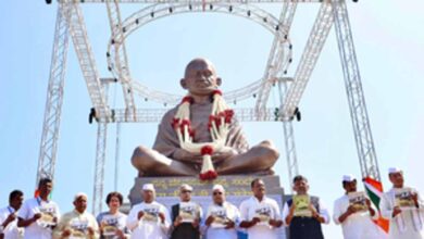 मल्लिकार्जुन खड़गे ने सुवर्ण विधान सौध के परिसर में महात्मा गांधी की 25 फीट ऊंची प्रतिमा का अनावरण किया