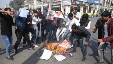 सपा संरक्षक मुलायम सिंह यादव की प्रतिमा का मामला तूल पकड़ रहा, महंत राजू दास का पुतला फूंका