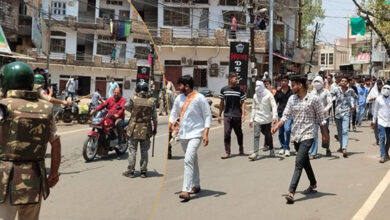 गुना में हनुमान जन्मोत्सव के दिन शोभायात्रा पर हुए हमले के विरोध में विश्व हिंदू परिषद और बजरंग दल ने शहर में प्रदर्शन किया