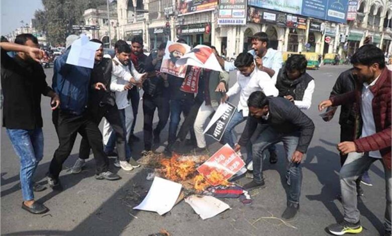 सपा संरक्षक मुलायम सिंह यादव की प्रतिमा का मामला तूल पकड़ रहा, महंत राजू दास का पुतला फूंका