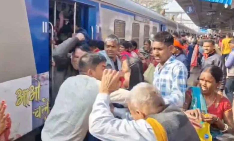 ट्रेन में बैठने के लिए भिड़े यात्री