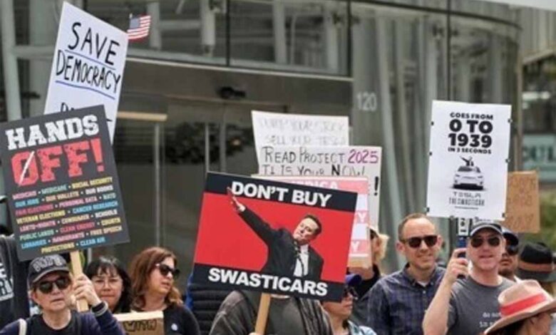 एलन मस्क के खिलाफ अमेरिका में सड़क पर उतरे हजारों लोग, फूंक दी टेस्ला की कई कारें