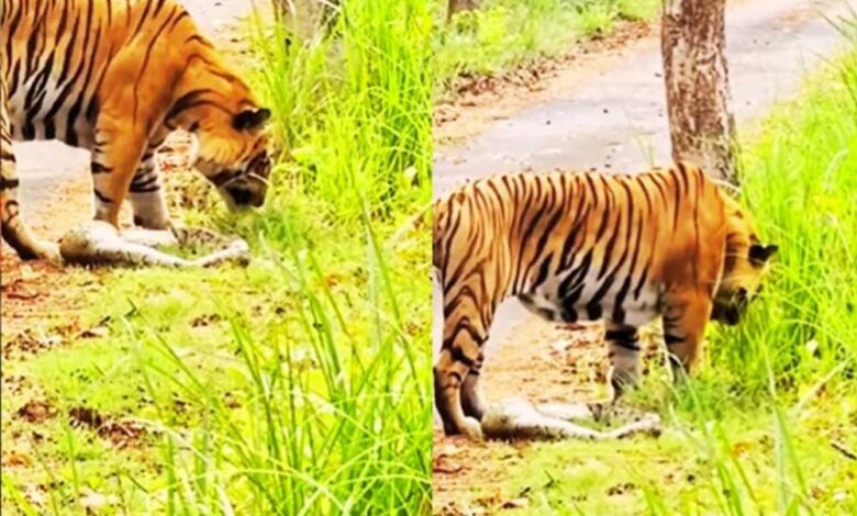 वायरल हो रहा वीडियो पीलीभीत के टाइगर रिज़र्व का है. यहां पर आपको एक टाइगर दिखाई दे रहा है, ज सड़क के किनारे टहल रहा है. उसके ठीक सामने एक मरा हुआ अजगर पड़ा हुआ है. वो उसके पास से निकलकर सामने मौजूद घास खाने लगता है. उसे इस तरह से घास चलते हुए देखकर आप भी आश्चर्य में पड़ जाएंगे. आखिर बाघ खास कैसे खा सकता है, जबकि वो विशुद्ध तौर पर मांसाहारी जानवर है.