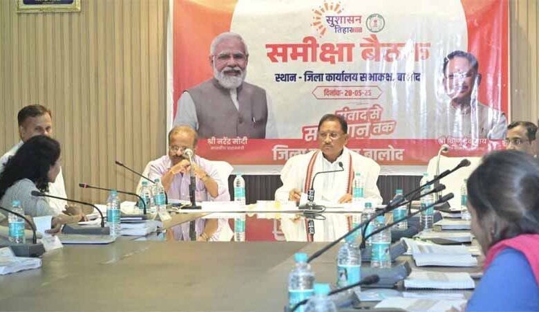 मुख्यमंत्री विष्णुदेव साय ने सुशासन तिहार के अंतर्गत संयुक्त जिला कार्यालय, बालोद के सभाकक्ष में बालोद, नारायणपुर एवं कांकेर जिले के अधिकारियों की बैठक लेकर शासकीय योजनाओं के क्रियान्वयन की अद्यतन स्थिति की गहन समीक्षा की। इस अवसर पर मुख्यमंत्री ने सभी अधिकारियों से अपेक्षा की कि वे समर्पण एवं जिम्मेदारी के साथ कार्य करते हुए विकसित छत्तीसगढ़ की परिकल्पना को साकार करने में सक्रिय भागीदारी निभाएं।