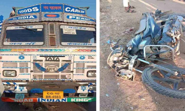 ट्रक ने मोटरसाइकिल को मारी टक्कर, एक युवक की मौत, दूसरा गंभीर
