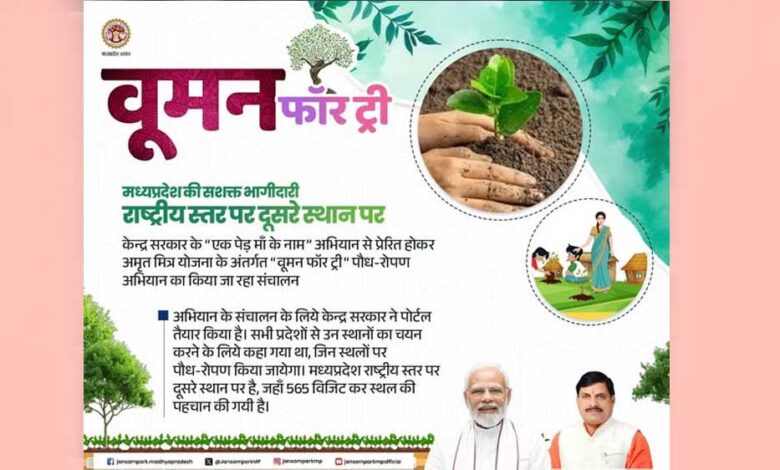 प्रदेश में केन्द्र सरकार के “एक पेड़ माँ के नाम” से प्रेरित होकर अमृत मित्र योजना के अंतर्गत “वूमन फॉर ट्री” पौध-रोपण अभियान का संचालन किया जा रहा है। यह अभियान प्रदेश में 5 जून से 31 अगस्त तक चलाया जायेगा। इस संबंध में नगरीय प्रशासन एवं विकास संचालनालय ने विस्तृत दिशा निर्देश नगरीय निकायों को जारी किये है। यह अभियान अमृत ​​2.0 योजना एवं डे-एनयूएलएम के कन्वर्जेंस से संचालित किया जा रहा है।