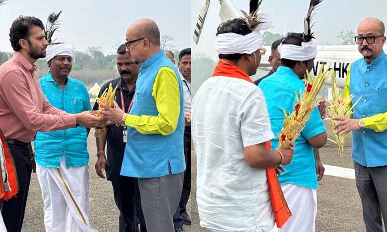 राज्यपाल रमेन डेका का कराली हैलीपेड में आत्मीय स्वागत