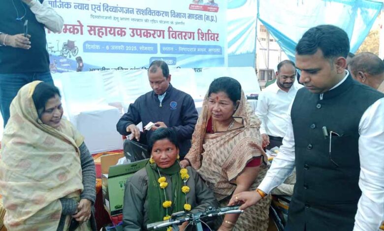 प्रदेश शासन की लोक स्वास्थ्य यांत्रिकी मंत्री श्रीमती संपतिया उइके ने कहा कि यशस्वी प्रधानमंत्री श्री नरेन्द्र मोदी और मुख्यमंत्री डॉ. मोहन यादव की सरकार दिव्यांगजनों के लिए सेवाभाव से काम कर रही है। सरकार ने दिव्यांगजनों के विकास और उत्थान के लिए विभिन्न योजनाएं संचालित की है। प्रधानमंत्री श्री नरेन्द्र मोदी ने विकलांग के स्थान पर दिव्यांगजन नाम देकर उन्हें गौरवान्वित किया है। दिव्यांगजनों की सेवा करना ही सच्ची मानवता की सेवा करना है। मंत्री श्रीमती संपतिया उइके सोमवार को निषादराज भवन में आयोजित सामाजिक न्याय एवं दिव्यांगजन उपकरण वितरण कार्यक्रम को संबोधित कर रही थी। मंत्री श्रीमती संपतिया उइके के आगमन पर उन्हें पौधा भेंट कर स्वागत किया गया। उन्होंने मां सरस्वती की प्रतिमा पर दीप प्रज्वलित कर कार्यक्रम का शुभारंभ किया। इस अवसर पर नगरपालिका अध्यक्ष श्री विनोद कछवाहा, जनपद पंचायत मंडला अध्यक्ष श्री सोनू भलावी, भाजपा नगर अध्यक्ष श्री शिवा रानू राजपूत, सांसद प्रतिनिधि श्री जयदत्त झा, कलेक्टर श्री सोमेश मिश्रा, जिला पंचायत के मुख्य कार्यपालन अधिकारी श्री श्रेयांश कूमट, डिप्टी कलेक्टर श्री आशुतोष ठाकुर, मुख्य नगरपालिका अधिकारी श्री गजानंद नाफड़े, श्री प्रफुल्ल मिश्रा सहित विभागीय अधिकारी, कर्मचारी मौजूद थे।